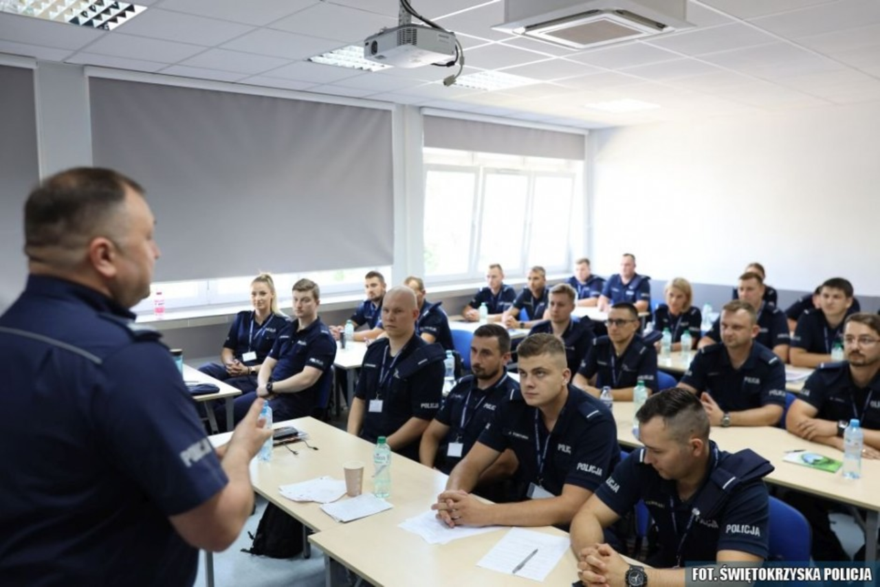 – Jego organizatorem jest Szkoła Policji w Katowicach przy udziale Komendy Wojewódzkiej Policji w Kielcach. Hybrydowa forma szkolenia pozwala na uczestniczenie w zajęciach online, prowadzonych przez wykładowców z Katowic, a jednocześnie zdobywanie wiedzy na miejscu, przekazywanej przez doświadczonych funkcjonariuszy komendy wojewódzkiej – wyjaśnia funkcjonariusz.