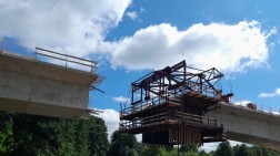 Na budowie powstały już konstrukcje nośne pięciu obiektów mostowych. Wśród nich znajdują się: podziemne przejście dla pieszych, trzy mosty nad strumieniem w Łabędziowie oraz wiadukt nad drogą powiatową.