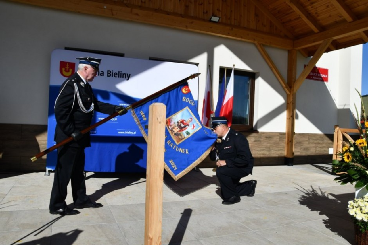 Najpierw odbyło się uroczyste przekazanie, a potem poświęcenie zarówno nowej remizy, połączonej ze świetlicą wiejską, jak i sztandaru OSP Makoszyn. Budynek będzie dużym wsparciem dla druhów, którzy działają w Makoszynie od 1956 roku. Teraz strażacy doczekali się nowej siedziby, wyposażonej w zaplecza socjalne, sanitarne i techniczne oraz garaż.