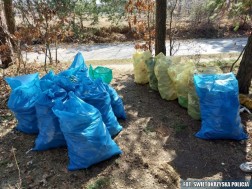 Do południa, czteroosobowa „ekipa sprzątająca” zebrała dziewięć worków szkła, sześć worków plastiku i dwa worki innych zanieczyszczeń. Przewozem zebranych nieczystości do utylizacji zajmą się teraz pracownicy urzędu gminy.