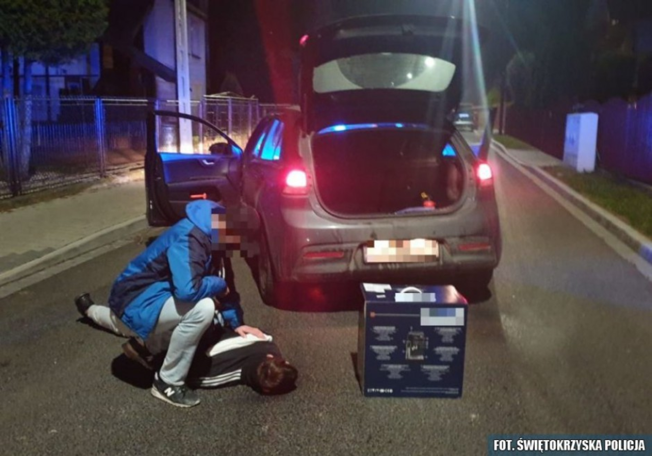 Policjanci zatrzymali jednego ze sprawców – 18-latka z województwa śląskiego. W pudełku, z którym biegli mężczyźni był ekspres do kawy, o wartości prawie dwa i pół tysiąca złotych. Okazało się, że urządzenie chwilę wcześniej zniknęło z pobliskiego sklepu.