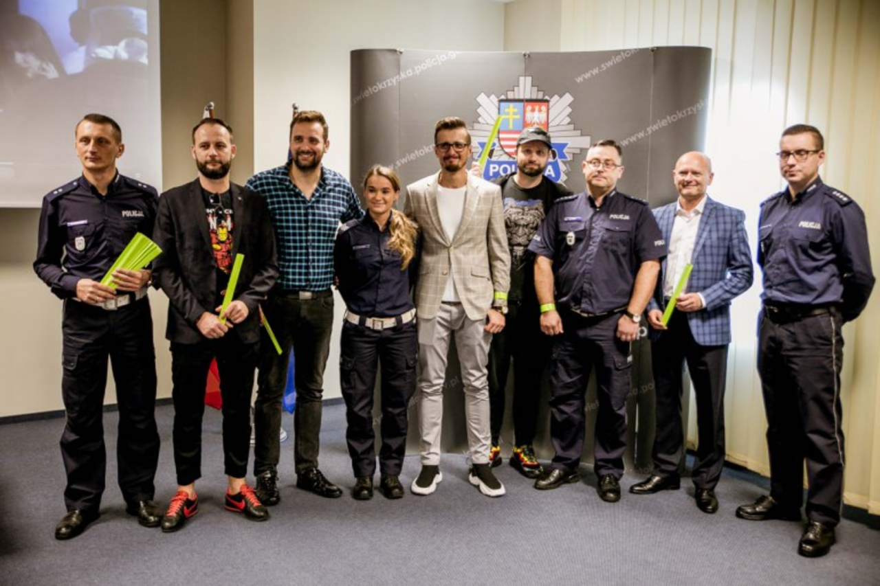 W akcję włączyli się artyści z kieleckiego Kabaretu Skeczów Męczących, którzy razem z funkcjonariuszami nagrali specjalny spot. Jak sami podkreślają, chcą pokazać, że założenie odblasku może uratować komuś życie. – Cieszymy się, że tu jesteśmy. Jesteśmy współwinni tego spotu, z którym chcielibyśmy zwrócić się szczególnie do młodych ludzi. Taka forma jest bardziej przystępna, niż zwykłe napominanie – mówił członek kabaretu, Karol Golonka.