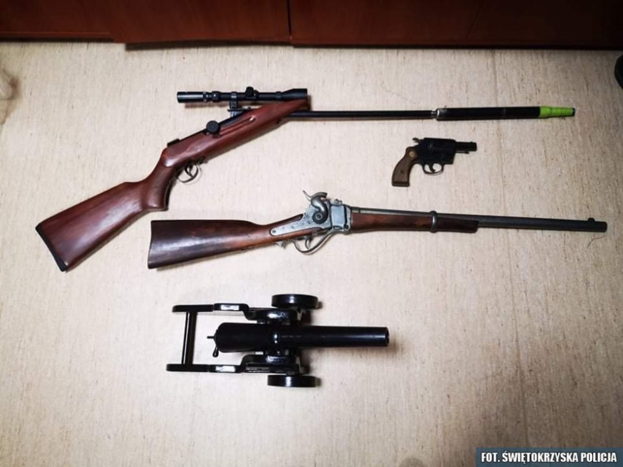 - Wybuchowa kolekcja 63-latka skłądała się z rewolweru gazowego, wiatrówki, repliki działka prochowego oraz strzelby z okresu wojny secesyjnej. Ponadto funkcjonariusze zabezpieczyli 21 sztuk amunicji różnego kalibru – informuje Joanna Szczepaniak z KPP w Staszowie.