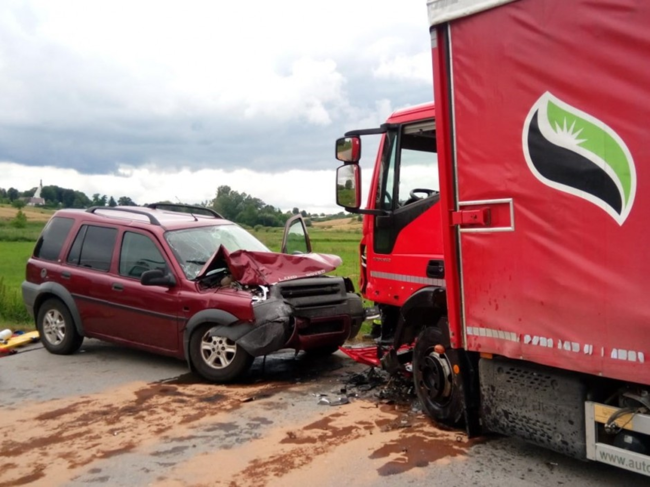 Na miejscu są trzy załogi ratownictwa medycznego, pięć zastępów straży pożarnej i policja. Droga powiatowa jest zablokowana.