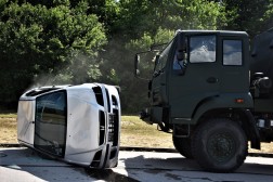 Trzecią, niecodzienną sytuacją było zderzenie kolumny pojazdów świętokrzyskich terytorialsów z samochodem osobowym na terenie RCNT. Na miejsce zdarzenia udały się zastępy ratownicze, które z osobówki wydobyły ciężko rannego mężczyznę. Udzieliły również pomocy medycznej żołnierzom znajdującym się w wojskowym pojeździe.
