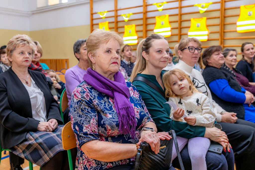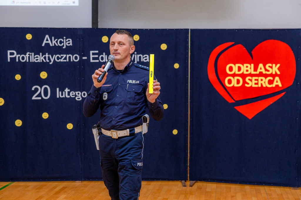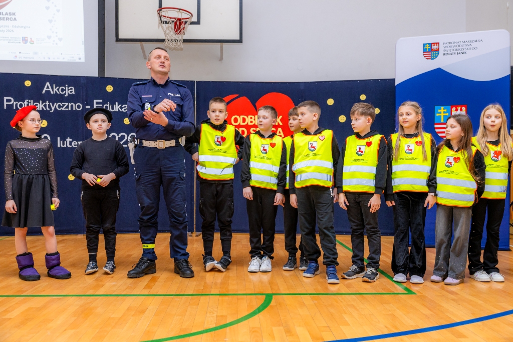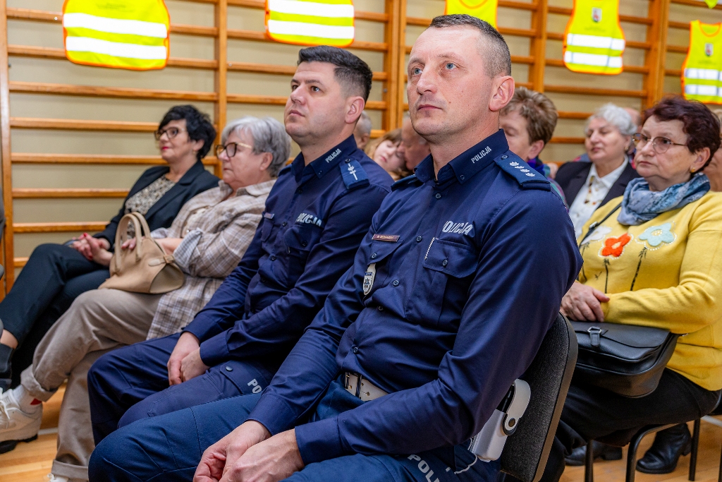 Jednym z głównych punktów programu była prelekcja nadkomisarza Mariusza Bednarskiego z Wydziału Ruchu Drogowego Komendy Wojewódzkiej Policji w Kielcach. Funkcjonariusz przypomniał zasady prawidłowego noszenia elementów odblaskowych oraz znaczenie ich stosowania dla bezpieczeństwa pieszych.