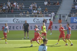 Przez kolejne minuty nie działo się zbyt wiele, ponieważ po zdobyciu drugiego gola gospodarze kradli każdą możliwą sekundę. W 77 minucie przyjęciem piłki Jacek Podgórski znalazł się w polu karnym, jednak jego strzał obronił Cojocaru.