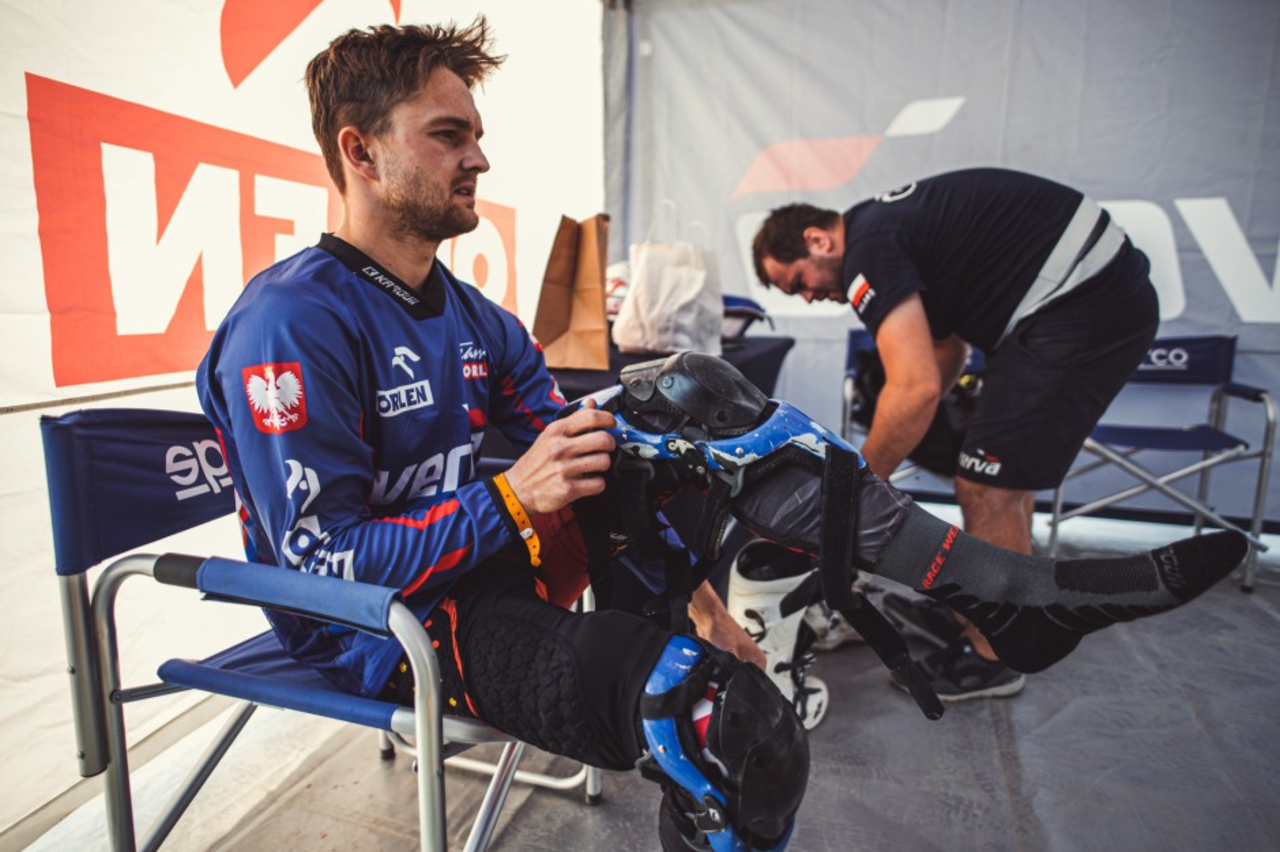 – Jesteśmy na półmetku rajdu. Za nami naprawdę dwa ciężkie dni. Motocykl na szczęście nie wymaga większej odbudowy. W piątek mieliśmy prawdziwą zmianę krajobrazu. Na trasie było dużo camel Grassów [twarde kępki roślin – przyp. red.] i wydm. Nie mogłem złapać odpowiedniego rytmu i w pewnym momencie stwierdziłem, że muszę się skupić na tym, żeby spokojnie dojechać do mety. Rok temu po sześciu etapach miałem 2 godziny i 36 minut straty do lidera. W tym roku to ledwie ponad 60 minut. Mogę być zadowolony z dotychczasowej jazdy – wyjaśnia Maciej Giemza.