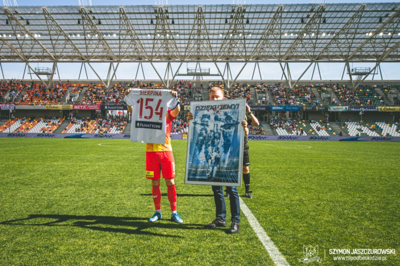 Miła uroczystość miała miejsce przed ostatnim meczem Korony Kielce w Bielsku-Białej. Podbeskidzie podziękowało Łukaszowi Sierpinie za pięć lat występów w tym klubie.