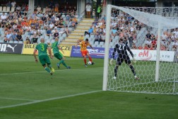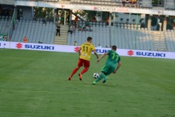 Spotkanie zaczęło się fatalnie dla gospodarzy. Już w 10 min. katastrofalny błąd popełnił bramkarz Hamrol, który zbyt daleko wypuścił sobie piłkę po podaniu z autu Kallaste. Pomyłkę momentalnie wykorzystał Marcin Robak, który błyskawicznie przejął futbolówkę i skierował ją do pustej bramki.