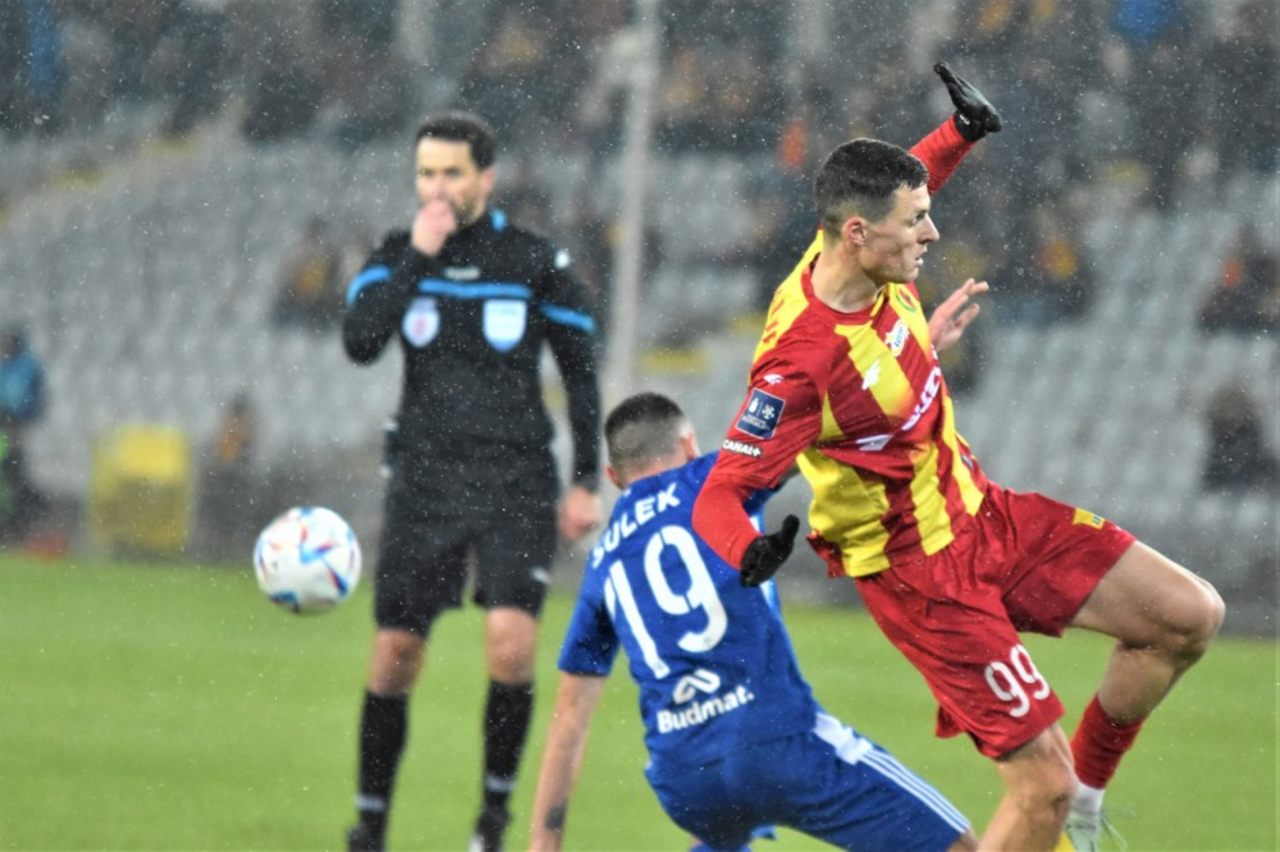 Pogoń potrafiła zepchnąć „żółto-czerwonych” do obrony. Atakowała dużą liczbą zawodników. W 32. minucie Sebastian Kowalczyk wstrzelił futbolówkę wzdłuż linii, ale nie przeciął jej żaden z jego kolegów.