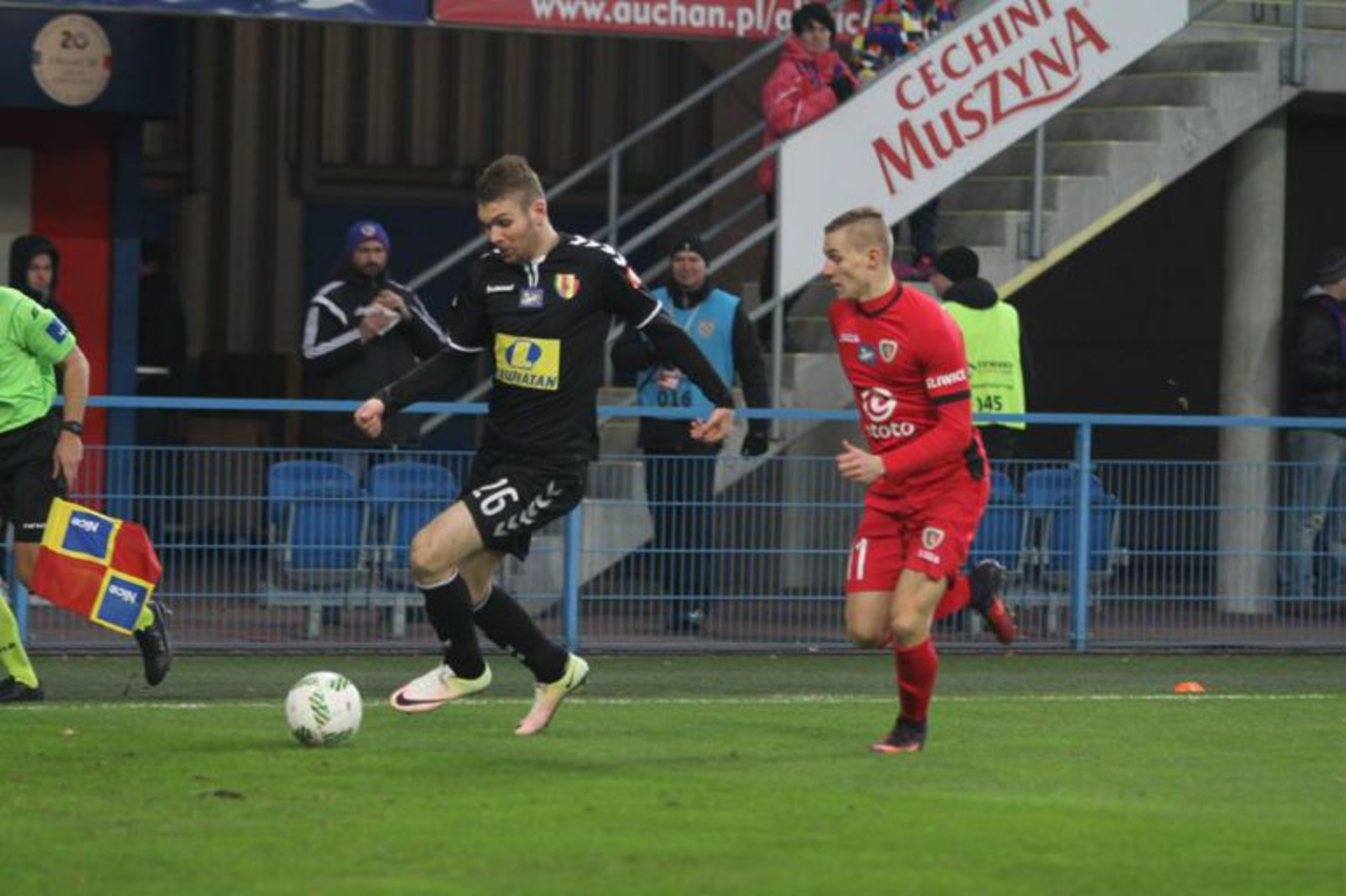 54 min - Palanca znalazł w polu karnym Kiełba, który z trudnej pozycji oddał strzał głową. Piłka nieznacznie minęła słupek bramki Szmatuły.