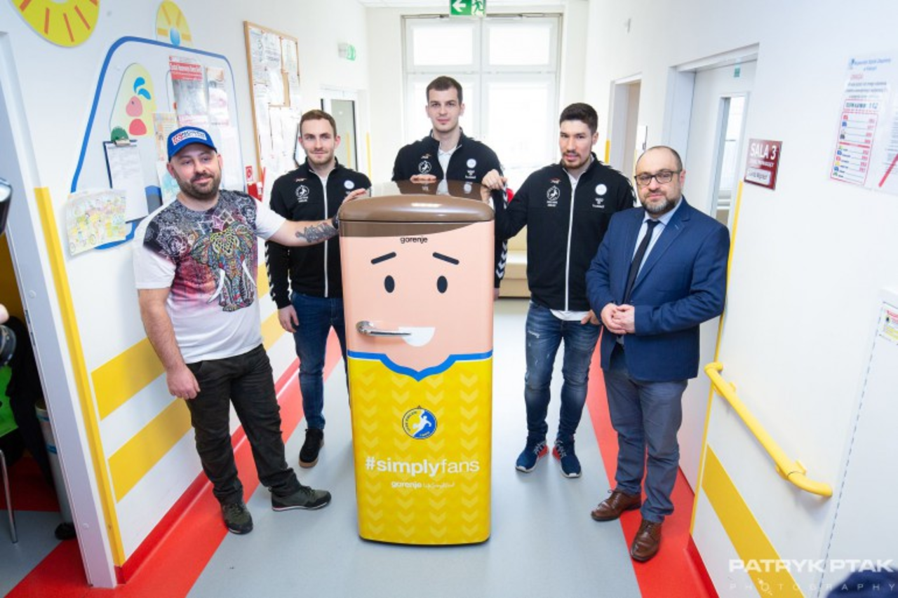 Lodówka w barwach PGE VIVE trafiła do Świętokrzyskiego Centrum Pediatrii przy ul. Grunwaldzkiej w Kielcach. Nagrodę zdobytą w konkursie #simplyfans przekazał kibic "żółto-biało-niebieskich", Maciej Patuła.