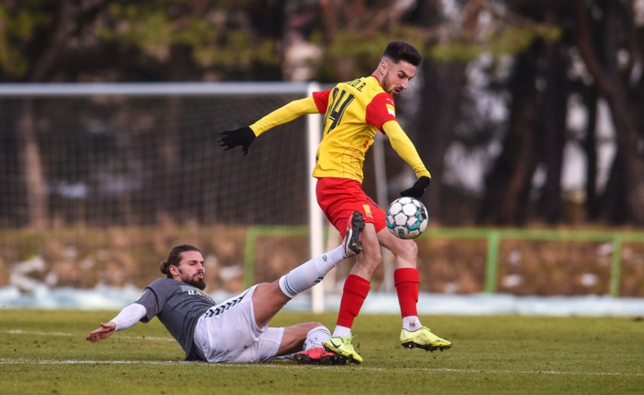 „Żółto-czerwoni” wyszli na sobotni mecz, rozegrany na stadionie przy ulicy Kusocińskiego, w ustawieniu z trójką obrońców. Na „wahadłach” zagrali Jacek Podgórski i Dawid Lisowski.