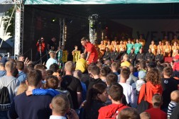 Dwudziestu siedmiu piłkarzy pojawiło się na scenie ustawionej na kieleckim Rynku podczas przedsezonowej prezentacji Korony. Dziewięciu z nich w sobotę odebrało "żółto-czerwone" koszulki z rąk prezesa klubu, Krzysztofa Zająca.