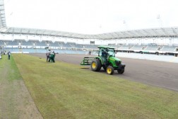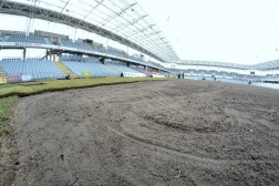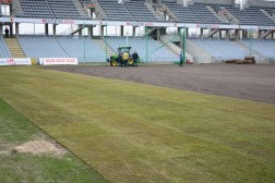 Prace przy rozkładaniu murawy mają zakończyć się w czwartek popołudniu, na trzy dni przed meczem z Cracovią Kraków. - Na chwilę obecną termin nie jest zagrożony. Tiry z trawą będą przyjeżdżały sukcesywnie. Po zakończeniu prac przy rozkładaniu odbędzie się podwójne wałowanie ciężkim wałem. Zostaną wykonane również pomiary przed geodetę, który wyznaczy punkty umożliwiające naszym pracownikom odpowiednie namalowanie linii wyznaczających boisko - zakończył Domaradzki.