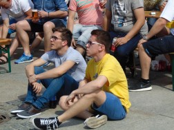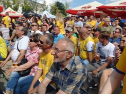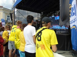 Tłum wypełniający Rynek bo brzegi wspólnie ogląda rozgrywki sportowe na dwóch telebimach. Ekrany zawisły po dwóch stronach kieleckiego Rynku. Pierwszy przy wlocie ul. Bodzentyńskiej, drugi na fasadzie Urzędu Miasta. Tuż obok wejścia do kieleckiego Ratusza ustawiona jest także strefa rodzinna, gdzie czas spędzają najmłodsi.