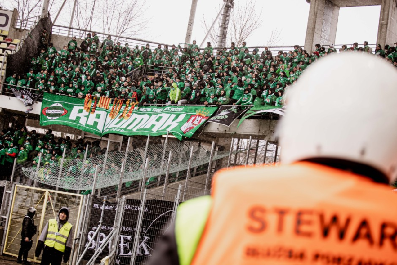 Sobotni mecz Korony Kielce z Radomiakiem Radom przyniósł gorącą atmosferę na trybunach. Kibice gości zachowali się skandalicznie. W drugiej połowie rzucali racami w sektory gospodarzy. Po spotkaniu doszło do bezpośredniej konfrontacji fanów. Musiała interweniować policja.