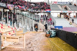 Podczas niedzielnego meczu Korony Kielce z Rakowem Częstochowa było bardzo gorąco na trybunach. W przerwie spotkania fani „żółto-czerwonych” zabrali flagę z sektora gości. Kibice z Częstochowa wyłamali kilka krzesełek, a interweniować musiała policja.